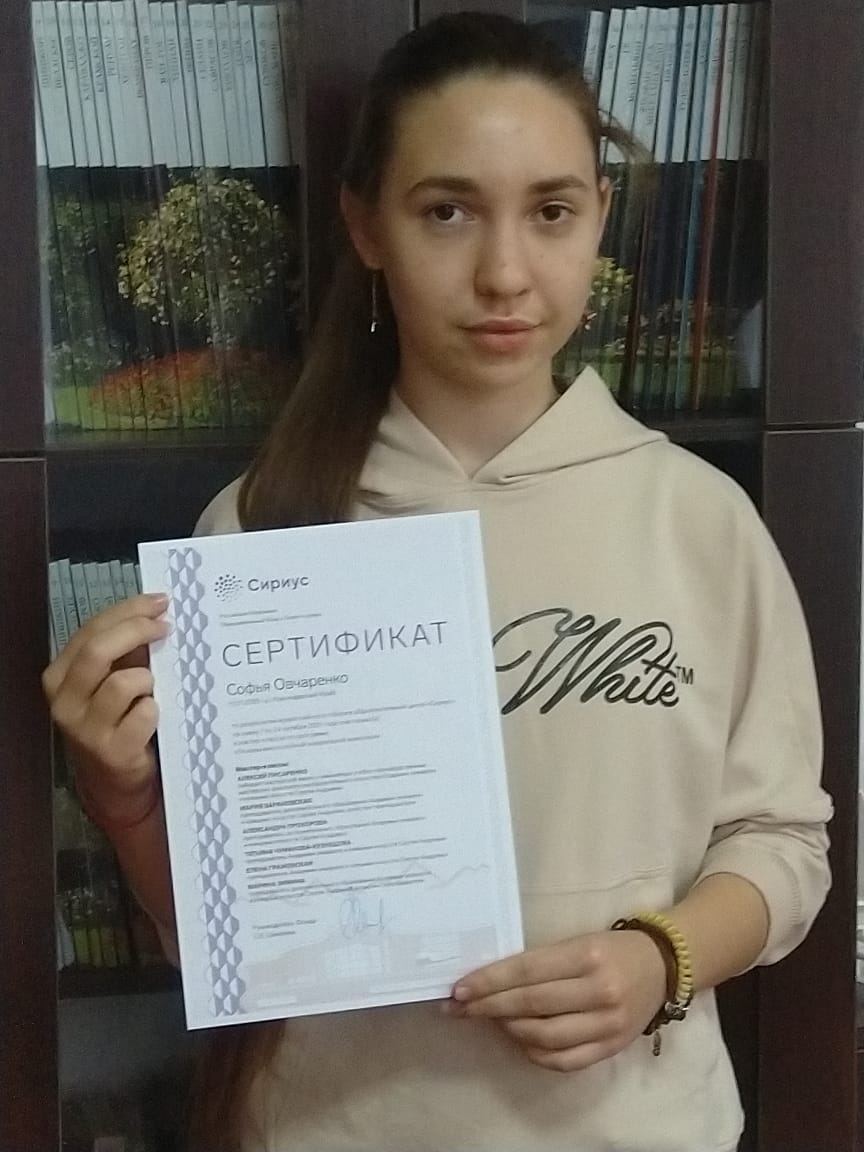 В октябре Овчаренко Софья, учащаяся Детской художественной школы (преподаватель Борисова Елена Леонтьевна) прошла обучение в Образовательном центре Сириус. Занятия по акварельной живописи и академическому рисунку проводились ведущими художниками – педагогами Школы и Академии акварели Сергея Андрияки. Цель программы обучения – подготовить наиболее одаренных детей к дальнейшему продолжению образования в сфере изобразительного искусства, дать представление о профессии в этой области. Софья получила от занятий массу впечатлений, творческий заряд и желание развивать свои способности дальше.